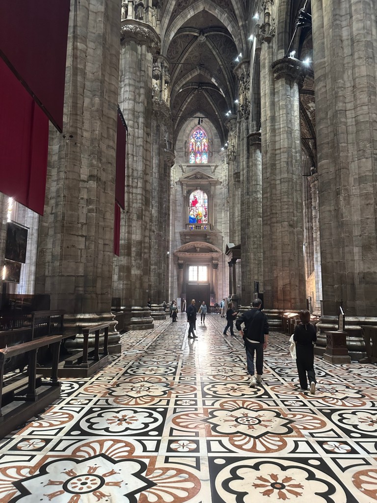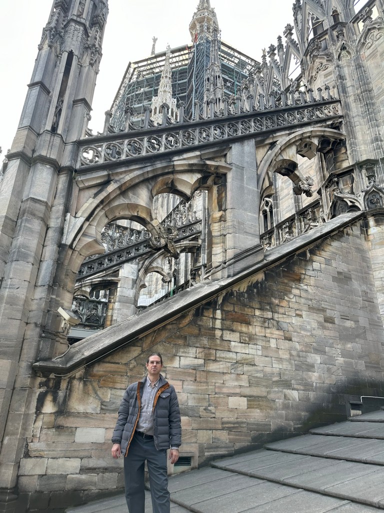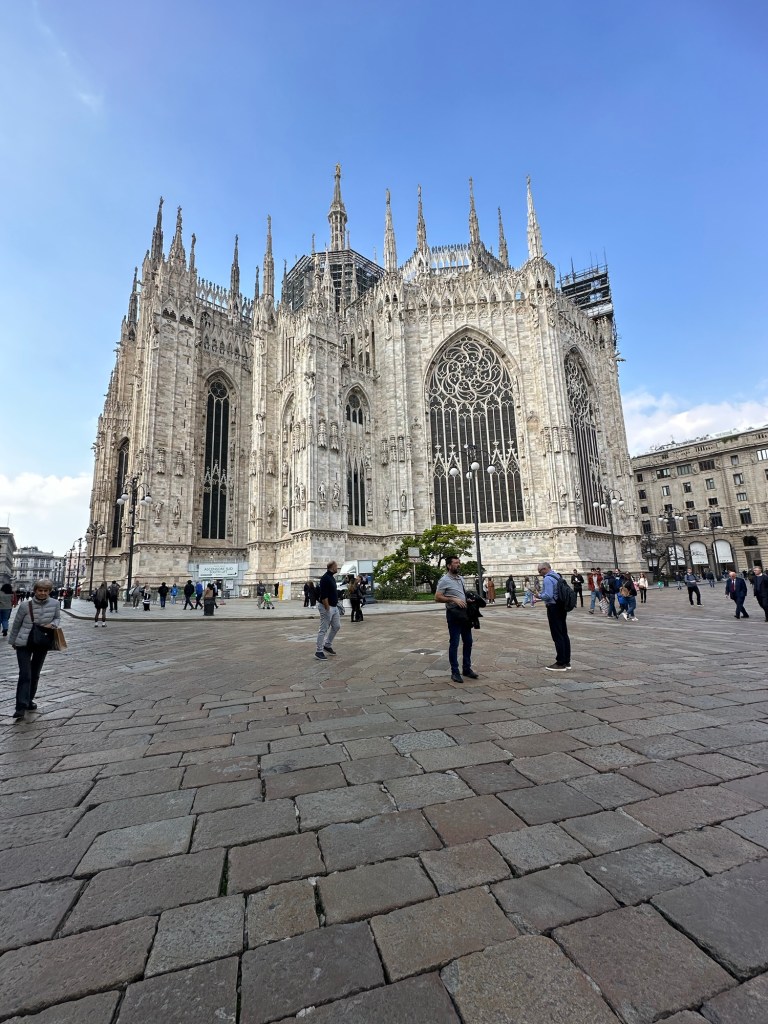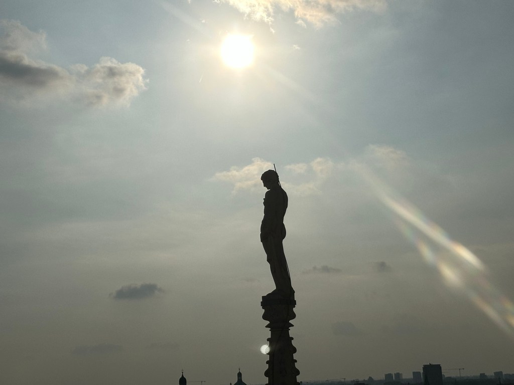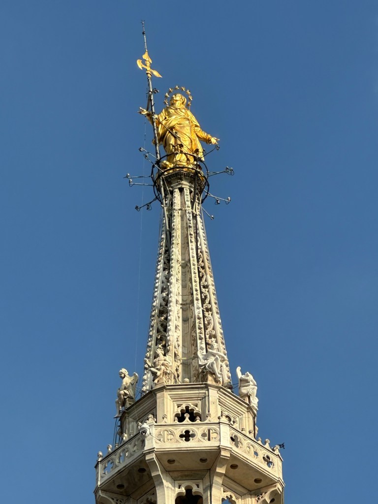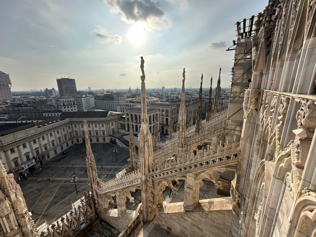 Although the weather during my stay in northern Italy was mostly rainy, foggy and grey, there was one day with excellent weather, so I took this opportunity to visit the Duomo and go up to the rooftop. There were many visitors at the Duomo that day and it was so nice seeing everyone enjoying the beautiful weather and taking in the majestic views of and from the cathedral.