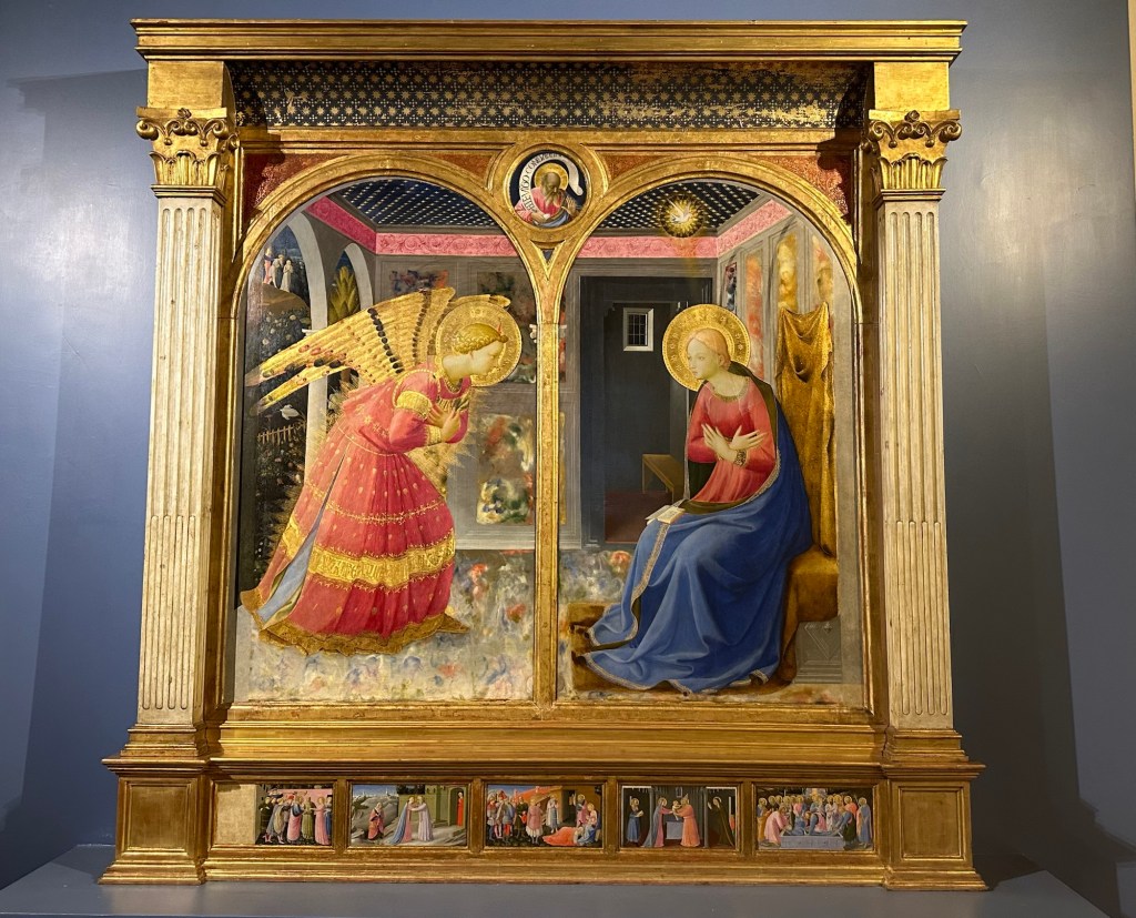 My next concert was on Sunday, October 27 in the enchanting town of San Giovanni Valdarno, located in the Arezzo province in Tuscany. Thanks to the fantastic autostrada, the drive from Bologna was rather quick and I arrived at hotel Michelangelo in the early evening which gave me an opportunity to rest up before the next concert day. On Sunday morning I visited the town and went to a small museum which houses one of the masterpieces of the renaissance – Fra Angelico’s Annunciation. The museum is located on the same piazza as the church where my concert will take place just a few hours later, and I found myself completely alone there! It was so inspiring to take time and look at the breathtaking artworks and much of that time was spent in the room with the Annunciation. It was the most memorable museum visit I have ever experienced.