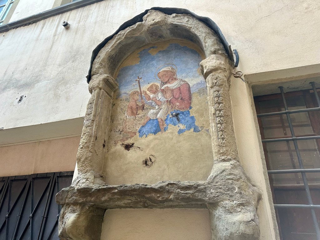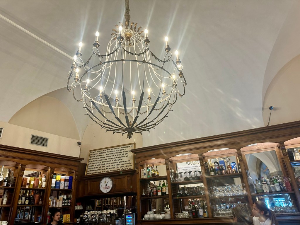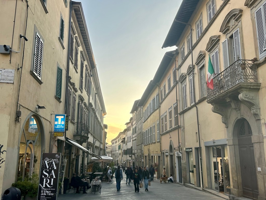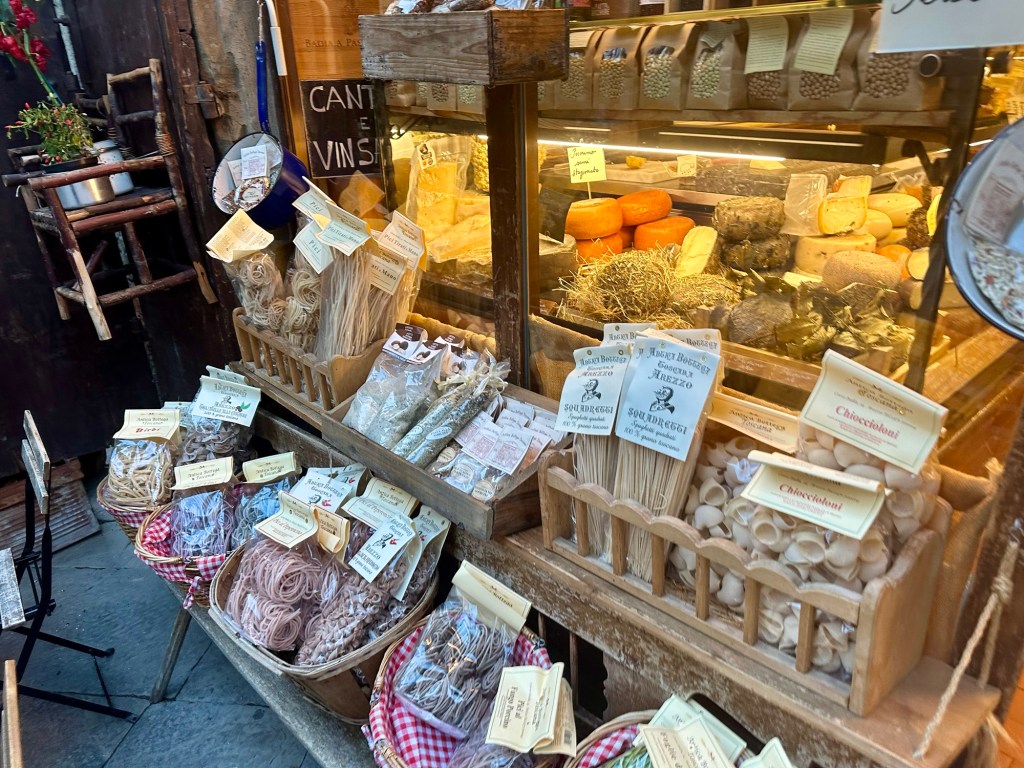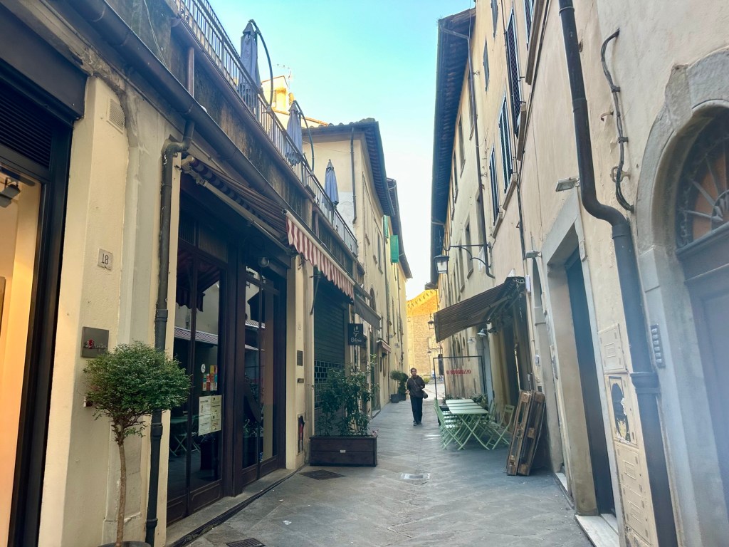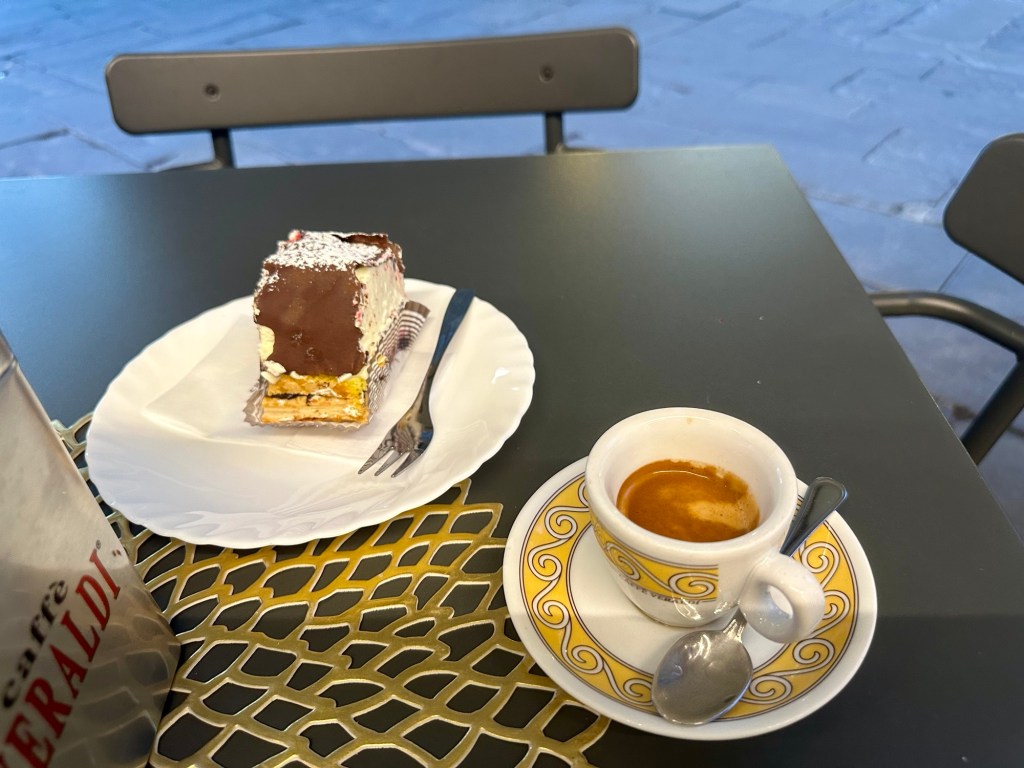 Throughout my whole trip, one constant was the great coffee everywhere. Whether it was an espresso (most of the time), a cappuccino (at the hotel’s breakfast) or the caffé Napolitano with hazelnut cream I had near the Duomo in Milan, it was always wonderful. After seeing all the artwork in Arezzo I went for a walk around the old town and along a delightful pedestrian street called Corso Italia, where I sat for another cup of coffee and a chocolate pastry.
