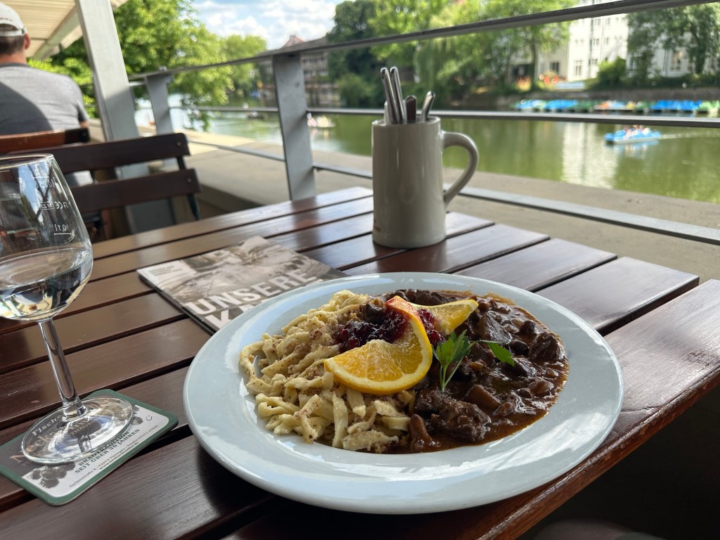 Lunch was at a well known local restaurant, Neckarmüller, right on the bank of the river Neckar which crosses the town. The views and the flavors were superb!